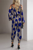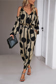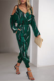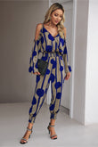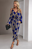 Printed Cold-Shoulder Surplice Neck Jumpsuit