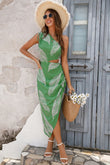 Printed Cutout Asymmetrical Sleeveless Midi Dress