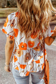 Printed Flounce Sleeve Tie-Neck Peplum Blouse