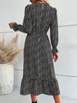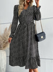 Printed Flounce Sleeve V-Neck Midi Dress