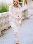 Printed Long Sleeve Top and Wide Leg Pants Lounge Set