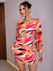 Printed Open Back Cutout Drawstring Mini Dress