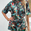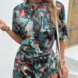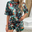 Printed Round Neck Dropped Shoulder Half Sleeve Top and Shorts Set