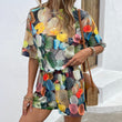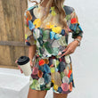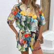 Printed Round Neck Dropped Shoulder Half Sleeve Top and Shorts Set