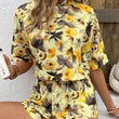 Printed Round Neck Dropped Shoulder Half Sleeve Top and Shorts Set