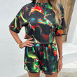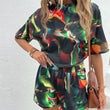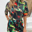 Printed Round Neck Dropped Shoulder Half Sleeve Top and Shorts Set