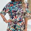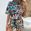 Printed Round Neck Dropped Shoulder Half Sleeve Top and Shorts Set