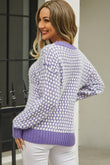 Printed Round Neck Dropped Shoulder Sweater
