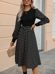 Printed Round Neck Long Sleeve Dress