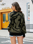 Printed Round Neck Long Sleeve Sweater