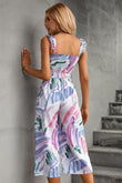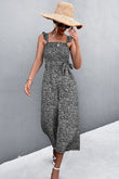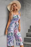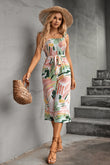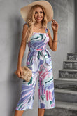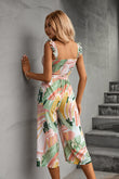 Printed Ruffle Strap Smocked Belted Jumpsuit