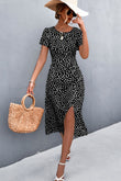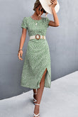 Printed Slit Cutout Midi Dress (Belt Not Included)