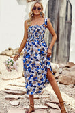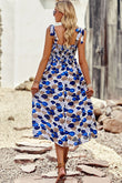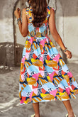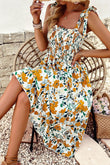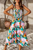 Printed Smocked Tie Shoulder Dress