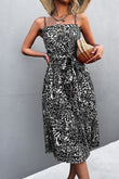 Printed Spaghetti Strap Decorative Button Belted Dress