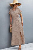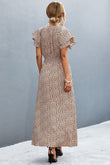 Printed Tie-Neck Flutter Sleeve Split Dress