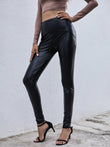 PU High Waist Slim Fit Long Pants