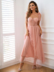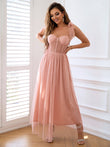 Rhinestone Mesh Overlay Tie-Shoulder Dress