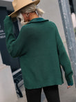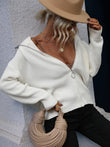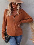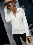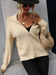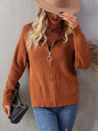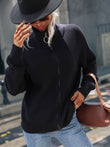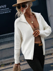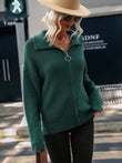 Rib-Knit Zip Up Collared Cardigan