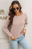 Ribbed Openwork Sleeve Round Neck Pullover Sweater