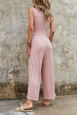 Ribbed Scoop Neck Tie Waist Sleeveless Jumpsuit