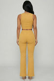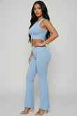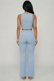 Ribbed Sleeveless Crop Top & Flared Pants Set