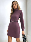 Ribbed Turtle Neck Long Sleeve Dress
