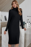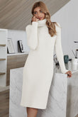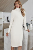 Ribbed Turtle Neck Long Sleeve Sweater Dress