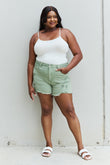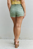 RISEN Katie Full Size High Waisted Distressed Shorts in Gum Leaf