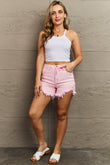 RISEN Kylie High Waist Raw Hem Shorts