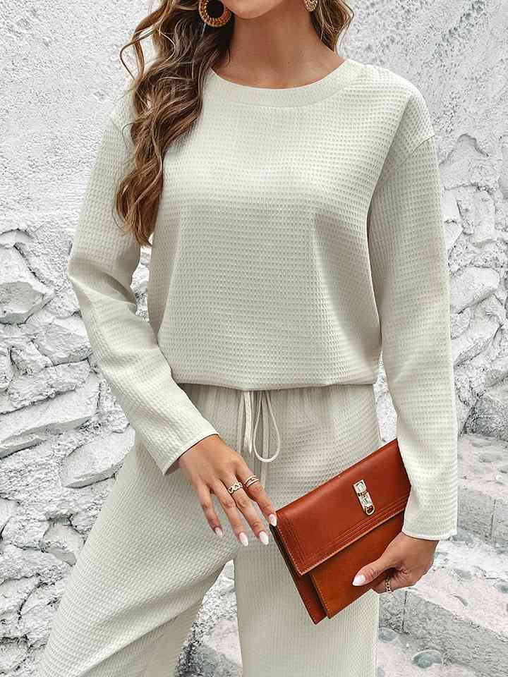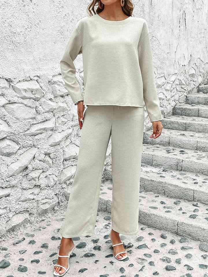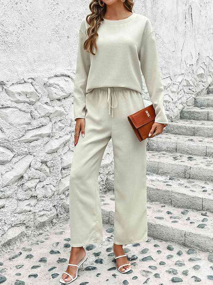 Round Neck Long Sleeve Top and Pants Set