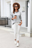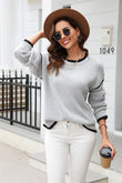 Round Neck Long Sleeve Waffle-Knit Sweater