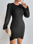 Round Neck Puff Sleeve Tulip Hem Mini Dress