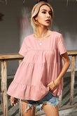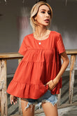 Round Neck Short Sleeve Tiered Blouse