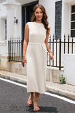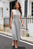 Round Neck Tie Belt Slit Sleeveless Sweater Dress