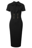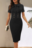 Round Neck Tie Front Short Sleeve Buttoned Dress
