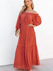 Ruffle Trim Off Shoulder Long Sleeve Maxi Dress