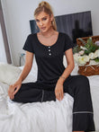 Scoop Neck Top and Elastic Waist Pants Lounge Set