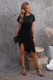 Short Sleeve Ruched Asymmetrical Hem Dress