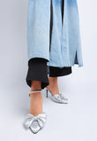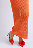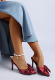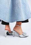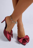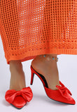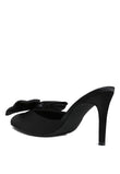 Flaunt the girly you in these cute big bow-heeled mules. Refresh it with basic stilettos and be trendy and channel flirty babe in you with the Satin-heeled beauties.Style Note: Basic Little Black dress to formals or just the casual brunch dress complements all look.