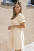 Smocked Square Neck Flounce Sleeve Mini Dress