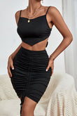 Spaghetti Strap Cropped Top and Ruched Skirt Set