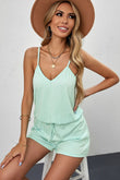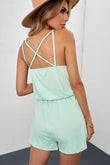 Spaghetti Strap Drawstring Waist Crisscross Romper