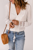 Spliced Lace V-Neck Long Sleeve Blouse