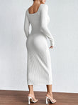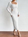 Square Neck Cutout Long Sleeve Dress
