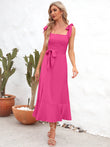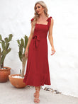 Square Neck Tie Strap Midi Dress