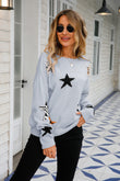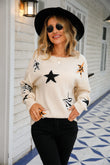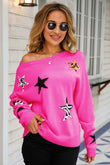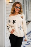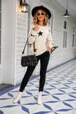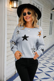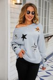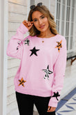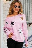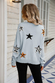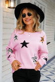 Star Pattern Round Neck Dropped Shoulder Sweater