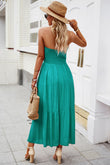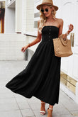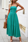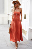 Strapless Buttoned Tiered Dress with Pockets