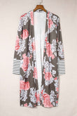 Stripe Detail Sleeve Floral Print Cardigan