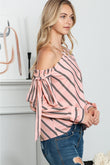 Striped Asymmetrical Long Sleeve Blouse