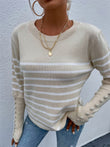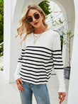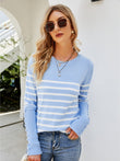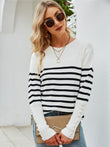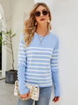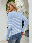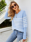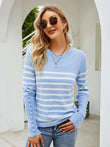 Striped Decorative Button Knit Top
